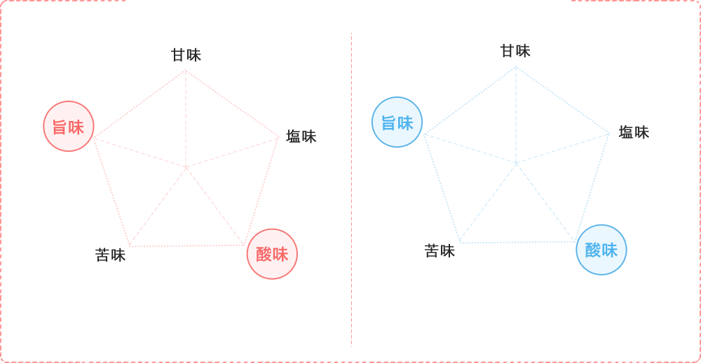 直前切り分けのAは酸味が抑えられているため、新鮮な状態と言える。Bのように小分けにしている時間が長いと、それだけ表面から劣化してしまいます。「酸味」は「旨み」に強く影響が出る味覚。切りつけのタイミングが大事です!